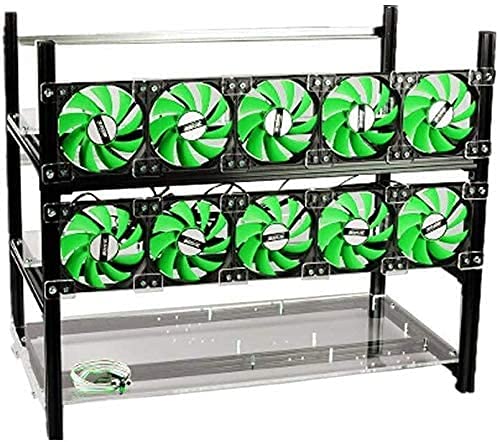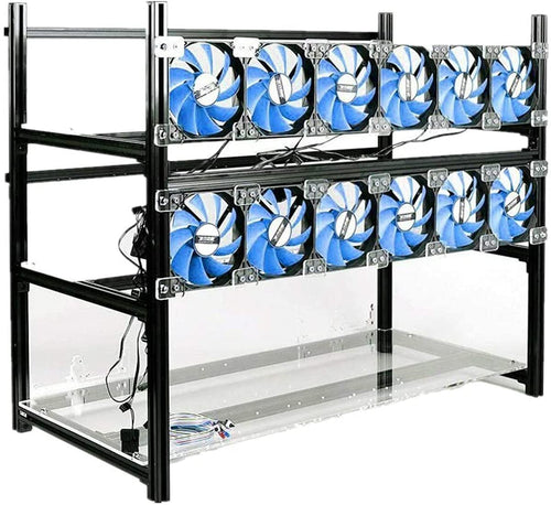 12GPU Open air Mining Case Stackable Computer Case Graphics Card Frame Rig for BTC LTC Ethereum ETH ETC 10 Fans Included